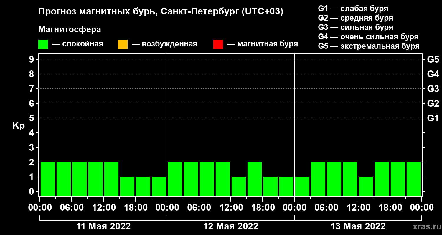 Прогноз магнитных бурь в Санкт-Петербурге — 11 мая 2022 года