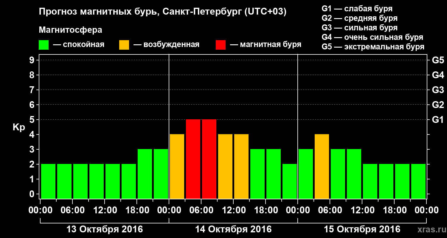 Прогноз магнитных бурь в Санкт-Петербурге — 13 октября 2016 года