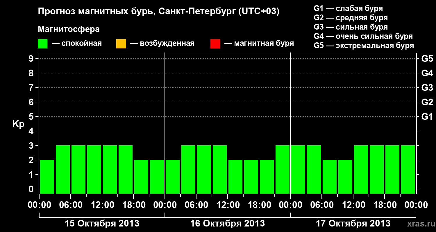 Прогноз магнитных бурь в Санкт-Петербурге — 15 октября 2013 года