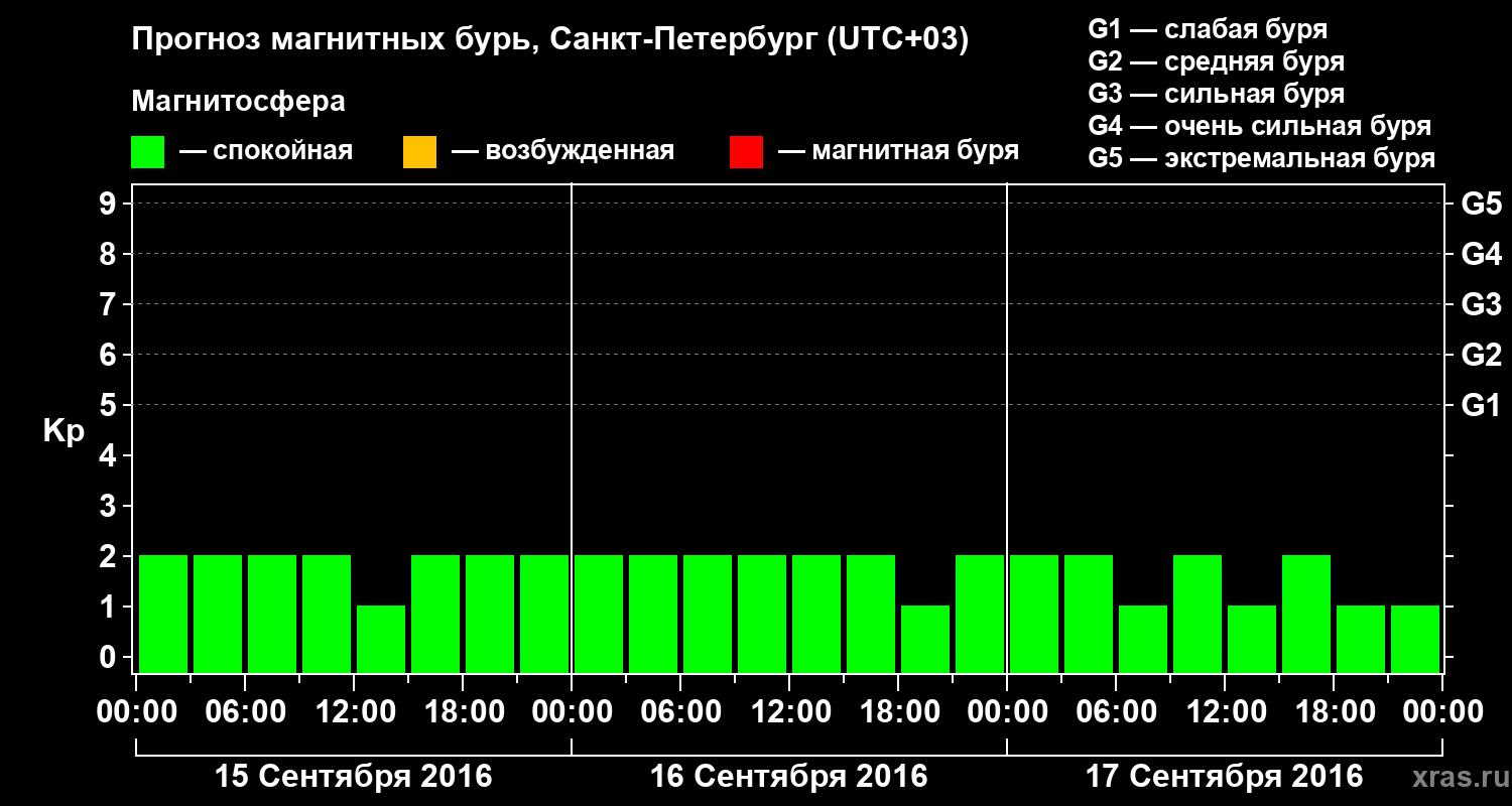 Прогноз магнитных бурь в Санкт-Петербурге — 15 сентября 2016 года