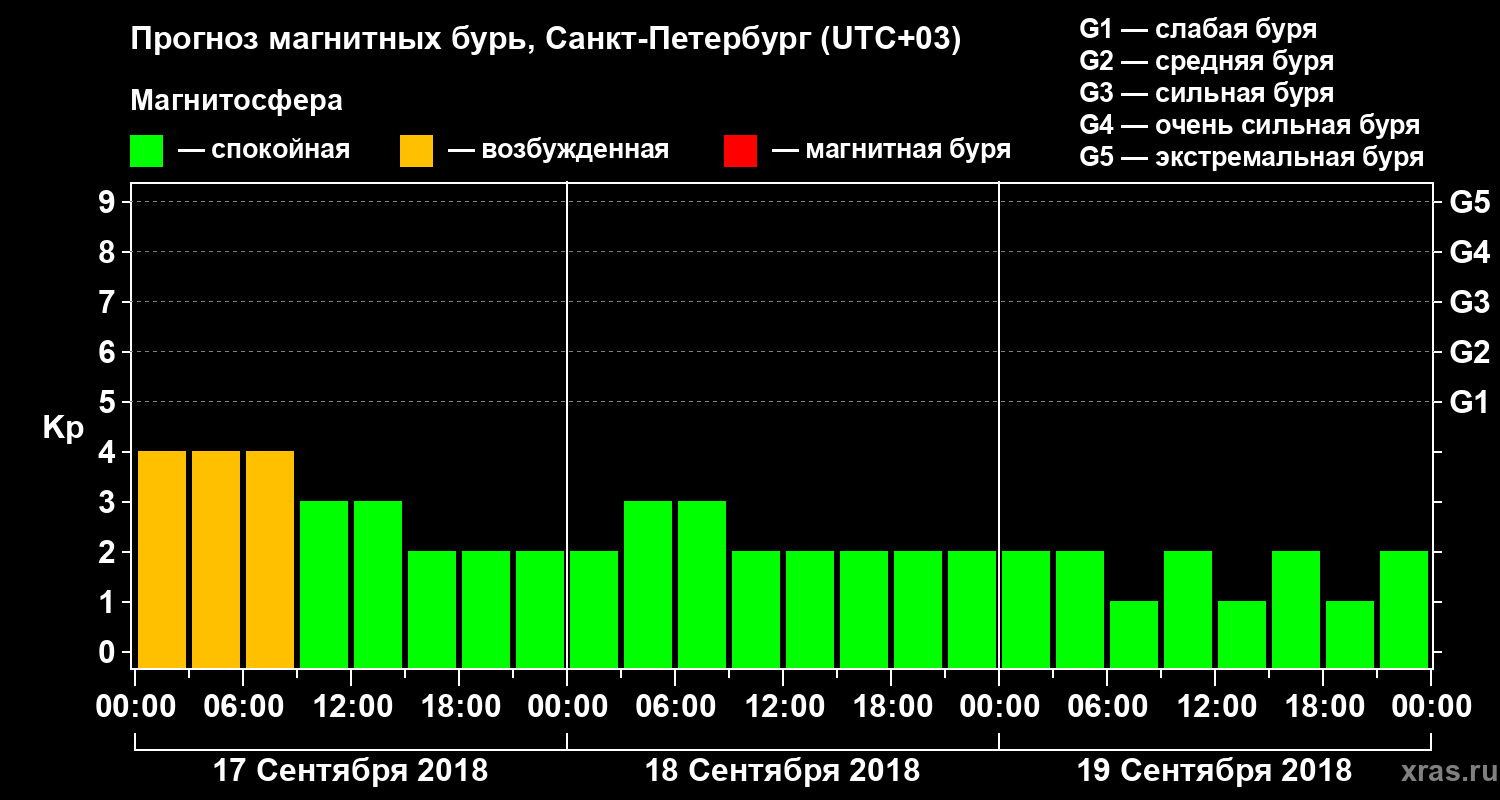 Прогноз магнитных бурь в Санкт-Петербурге — 17 сентября 2018 года