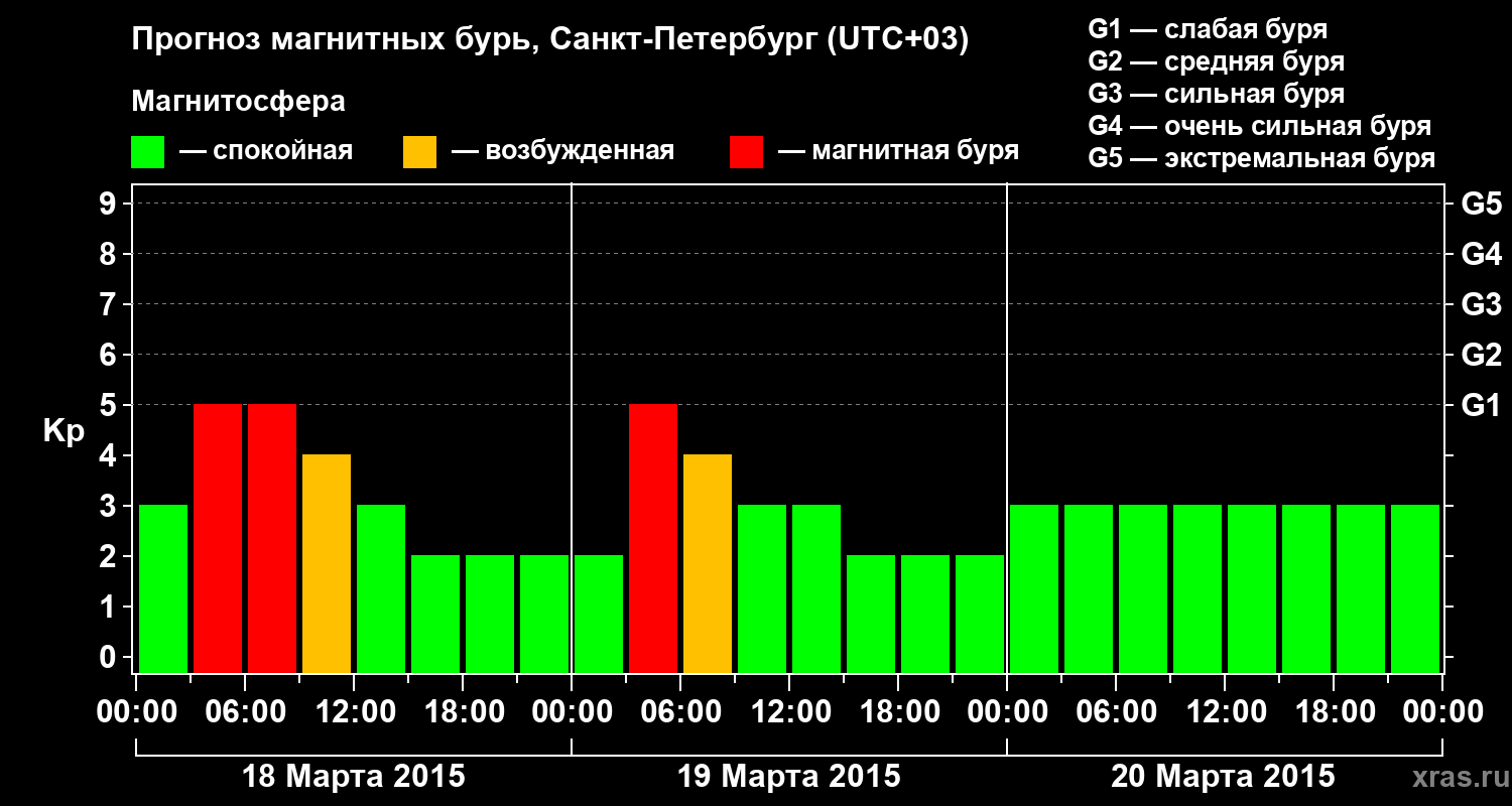 Прогноз магнитных бурь в Санкт-Петербурге — 18 марта 2015 года