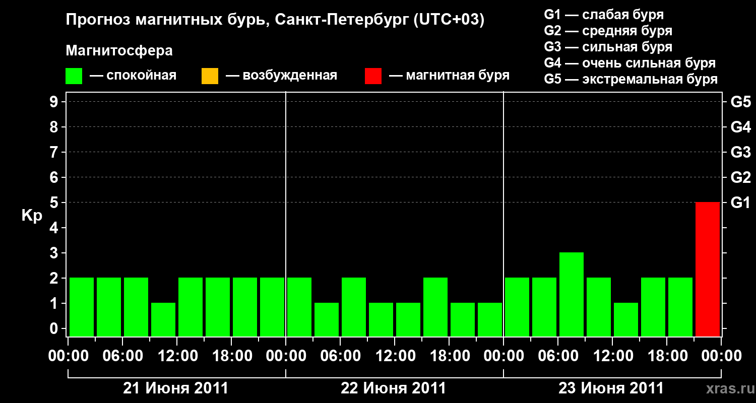 Прогноз магнитных бурь в Санкт-Петербурге — 21 июня 2011 года