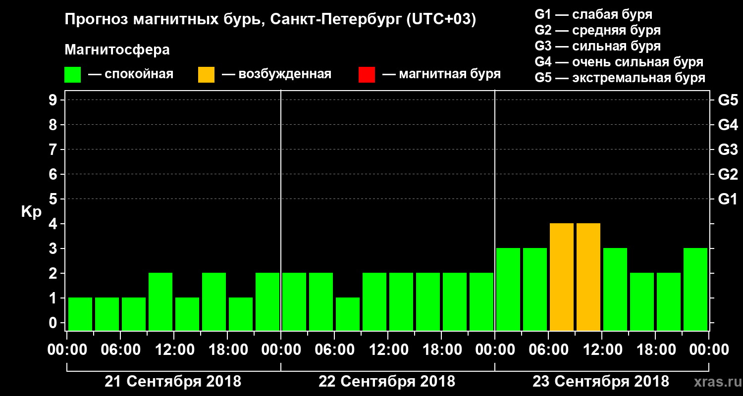 Прогноз магнитных бурь в Санкт-Петербурге — 21 сентября 2018 года
