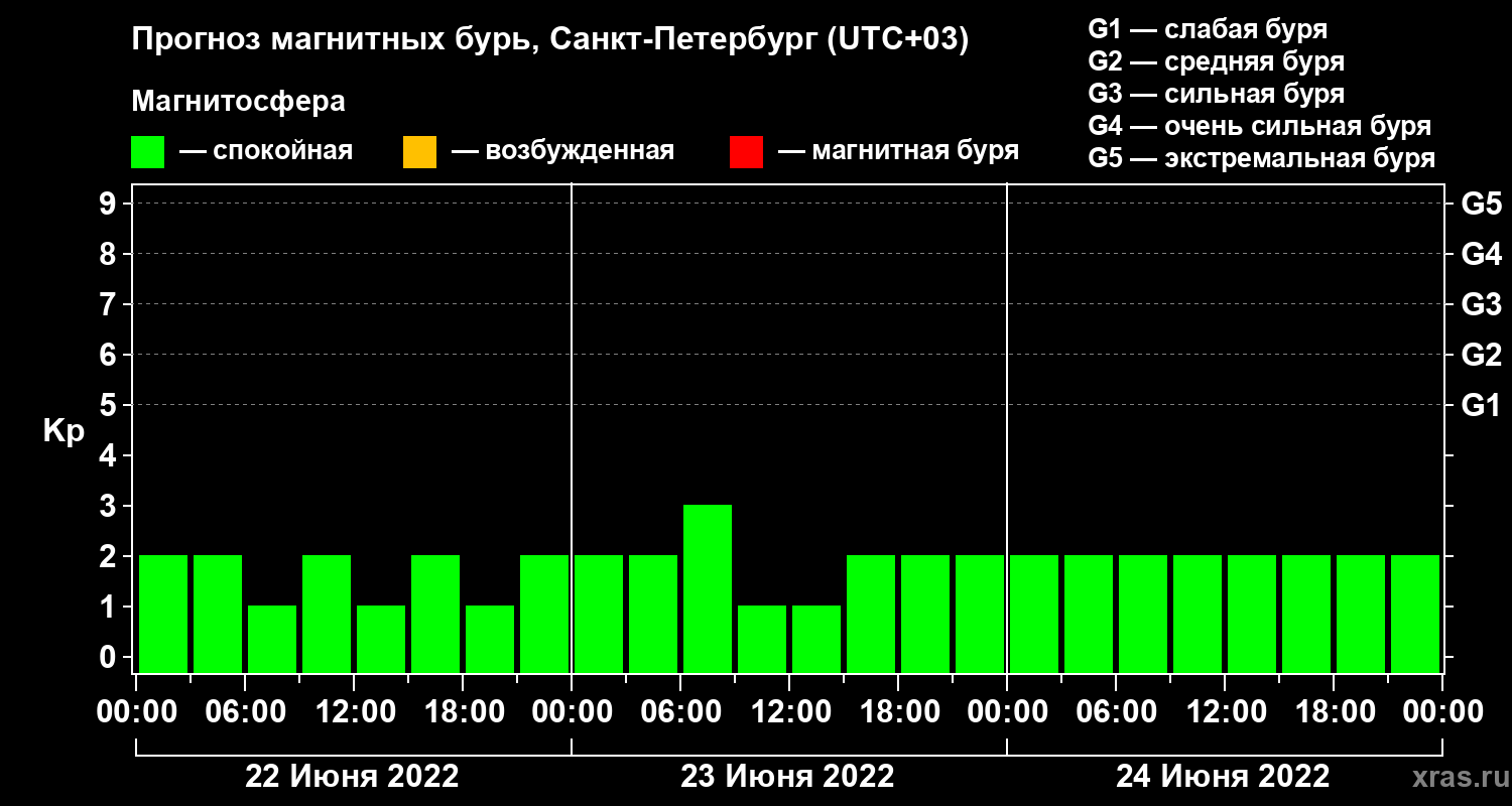 Прогноз магнитных бурь в Санкт-Петербурге — 22 июня 2022 года