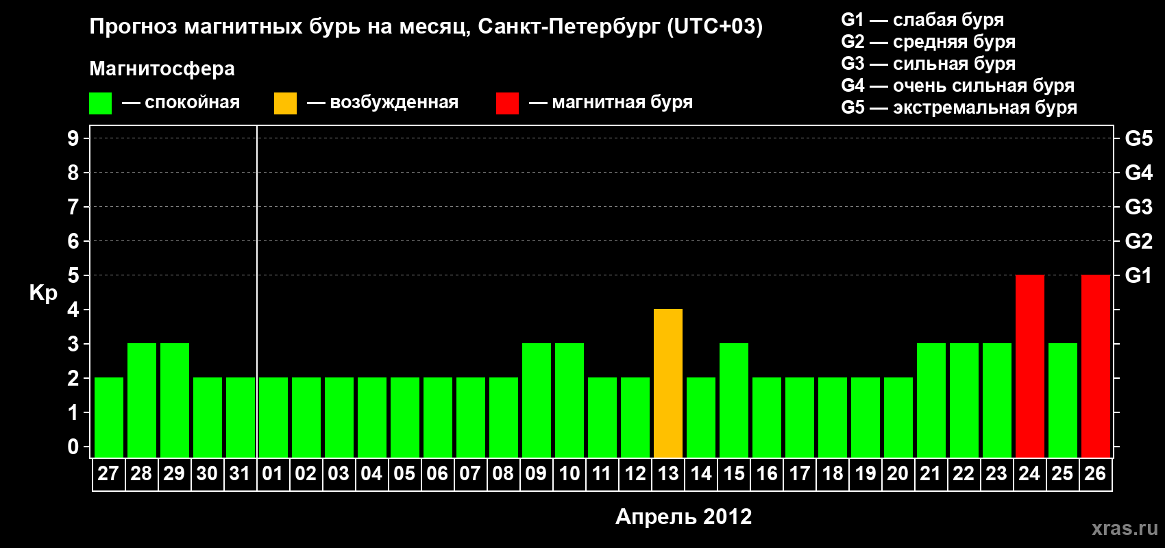 Прогноз магнитных бурь в Санкт-Петербурге — 27 марта 2012 года