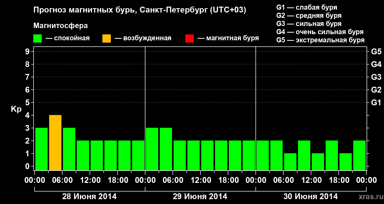 Прогноз магнитных бурь в Санкт-Петербурге — 28 июня 2014 года