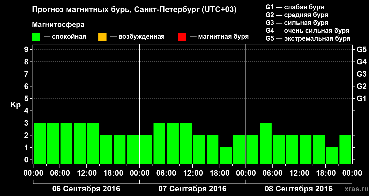 Прогноз магнитных бурь в Санкт-Петербурге на 6 сентября 2016 года