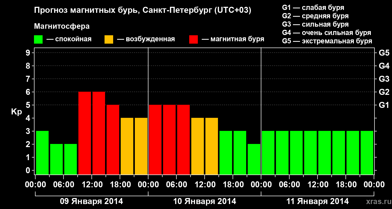 Прогноз магнитных бурь в Санкт-Петербурге — 9 января 2014 года