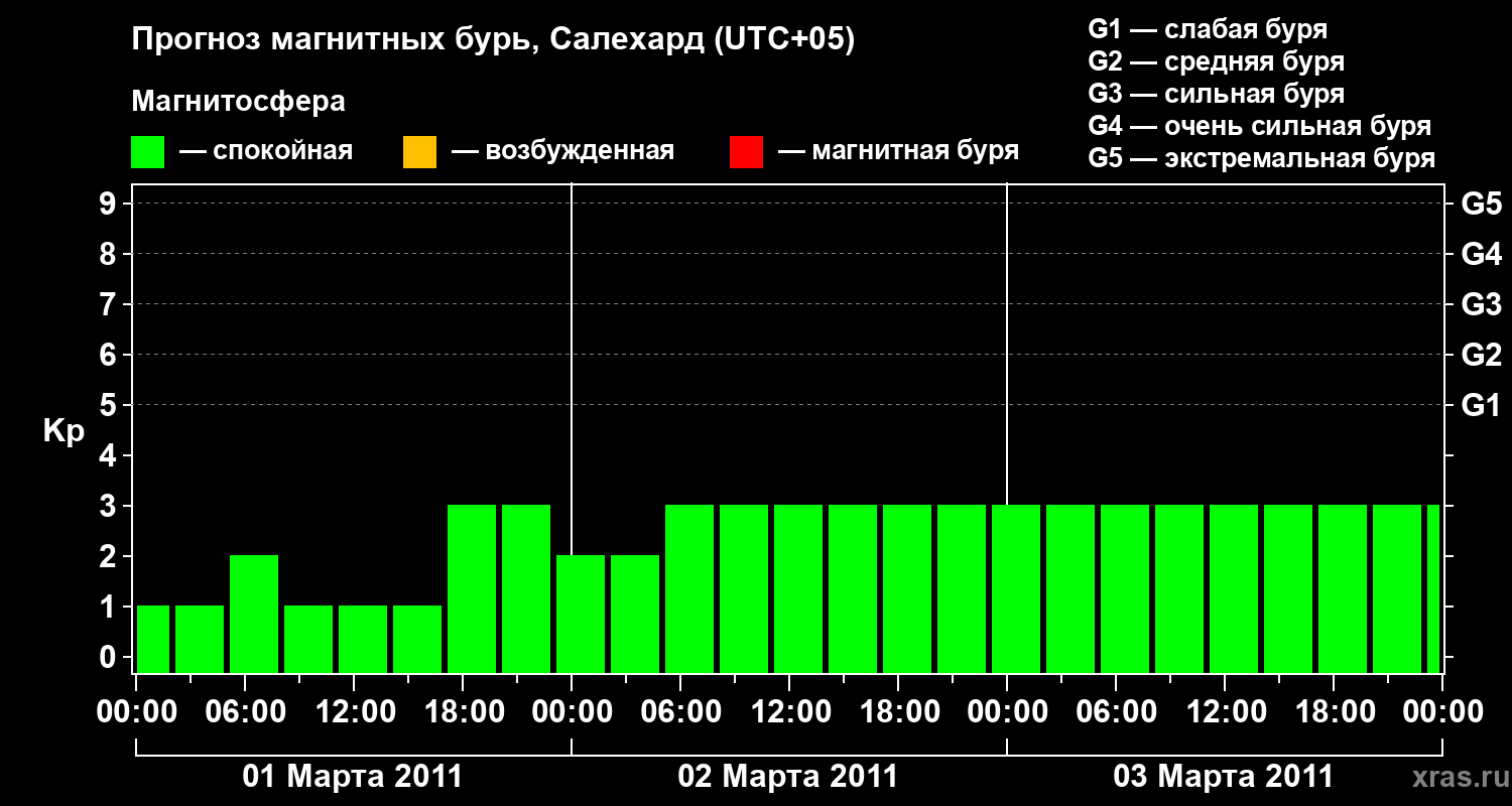 Прогноз магнитных бурь в Салехарде — 1 марта 2011 года