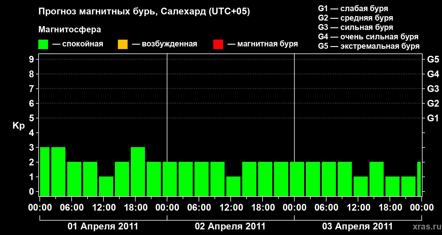 Прогноз магнитных бурь в Салехарде на 1 апреля 2011 года
