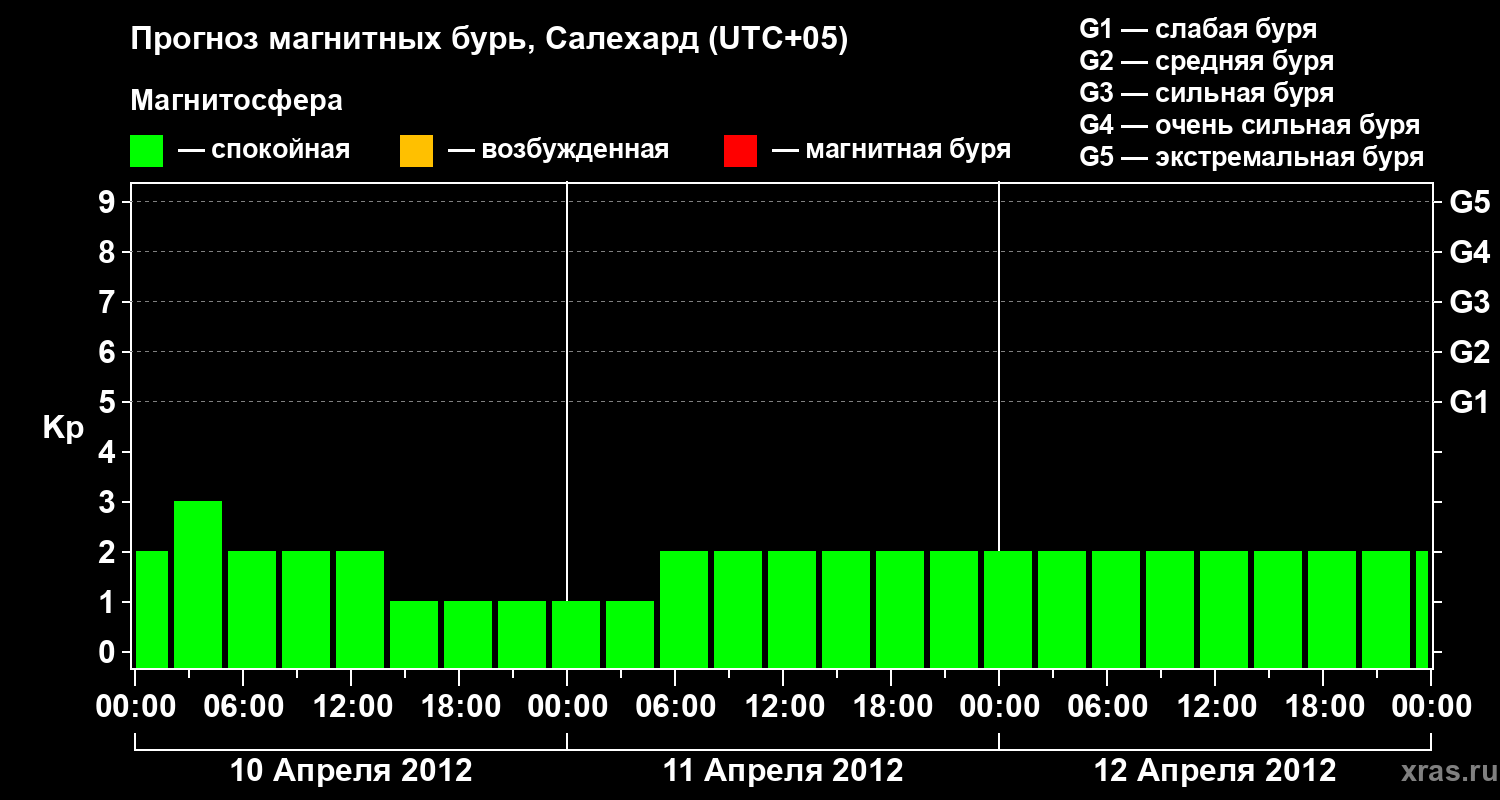 Прогноз магнитных бурь в Салехарде на 10 апреля 2012 года