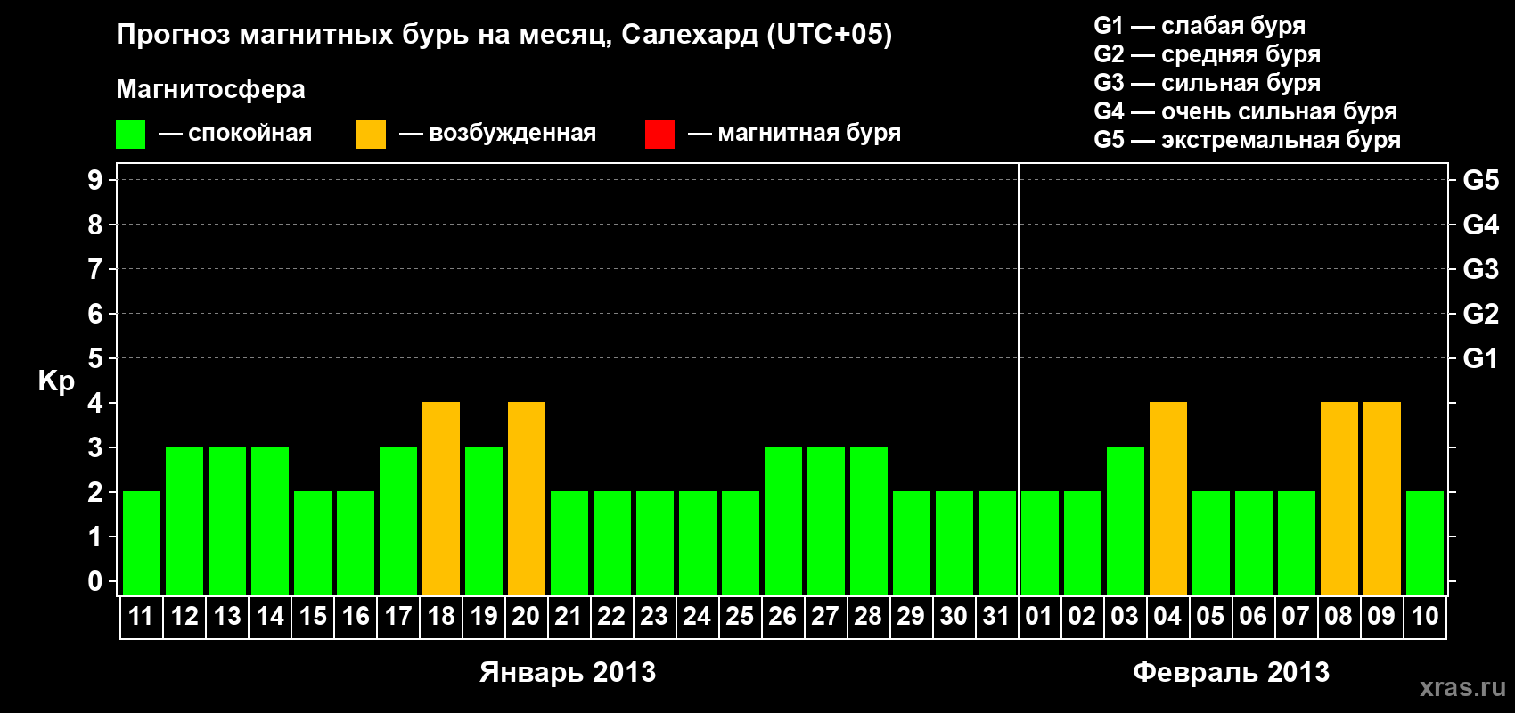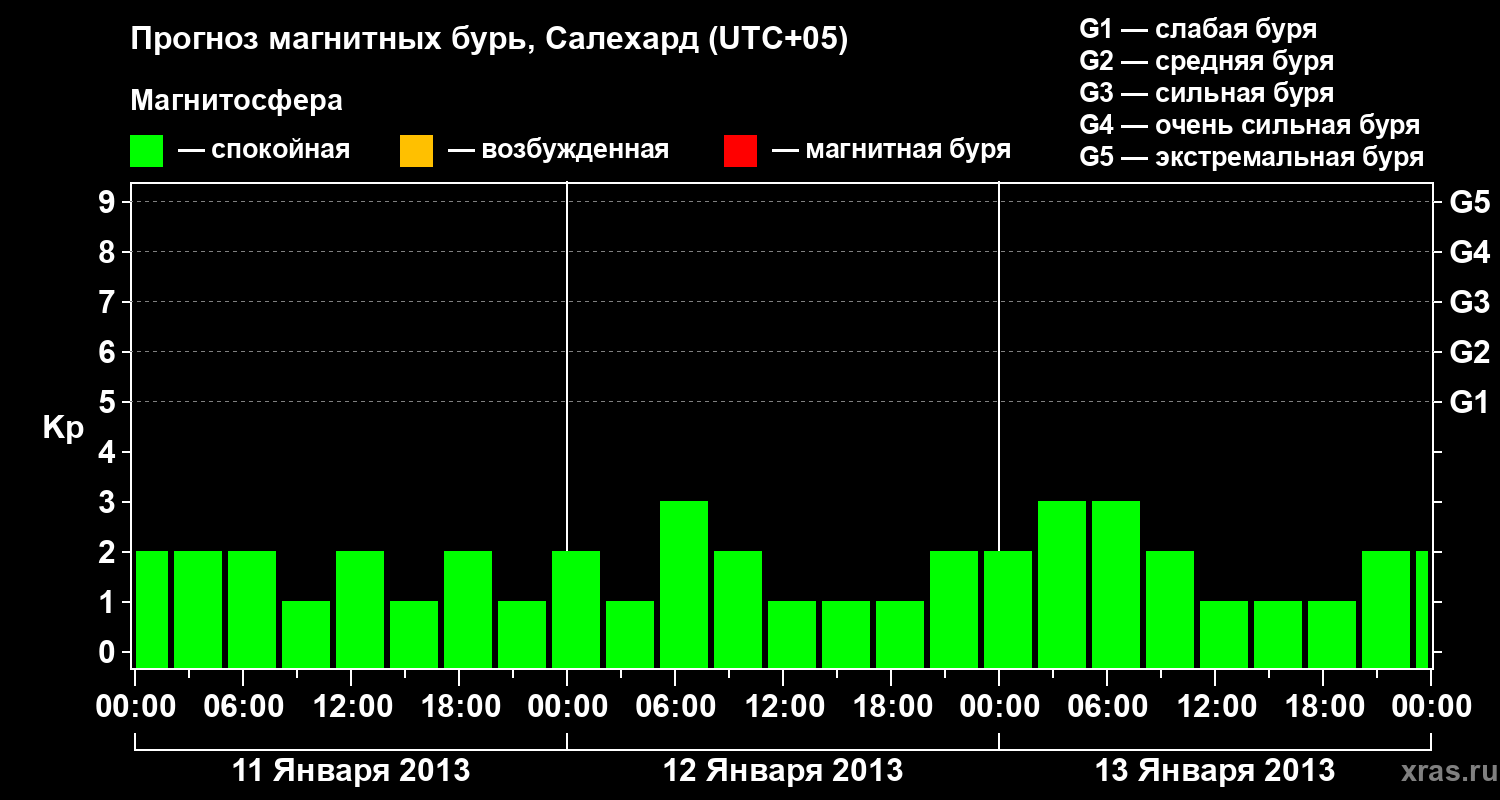 Прогноз магнитных бурь в Салехарде — 11 января 2013 года