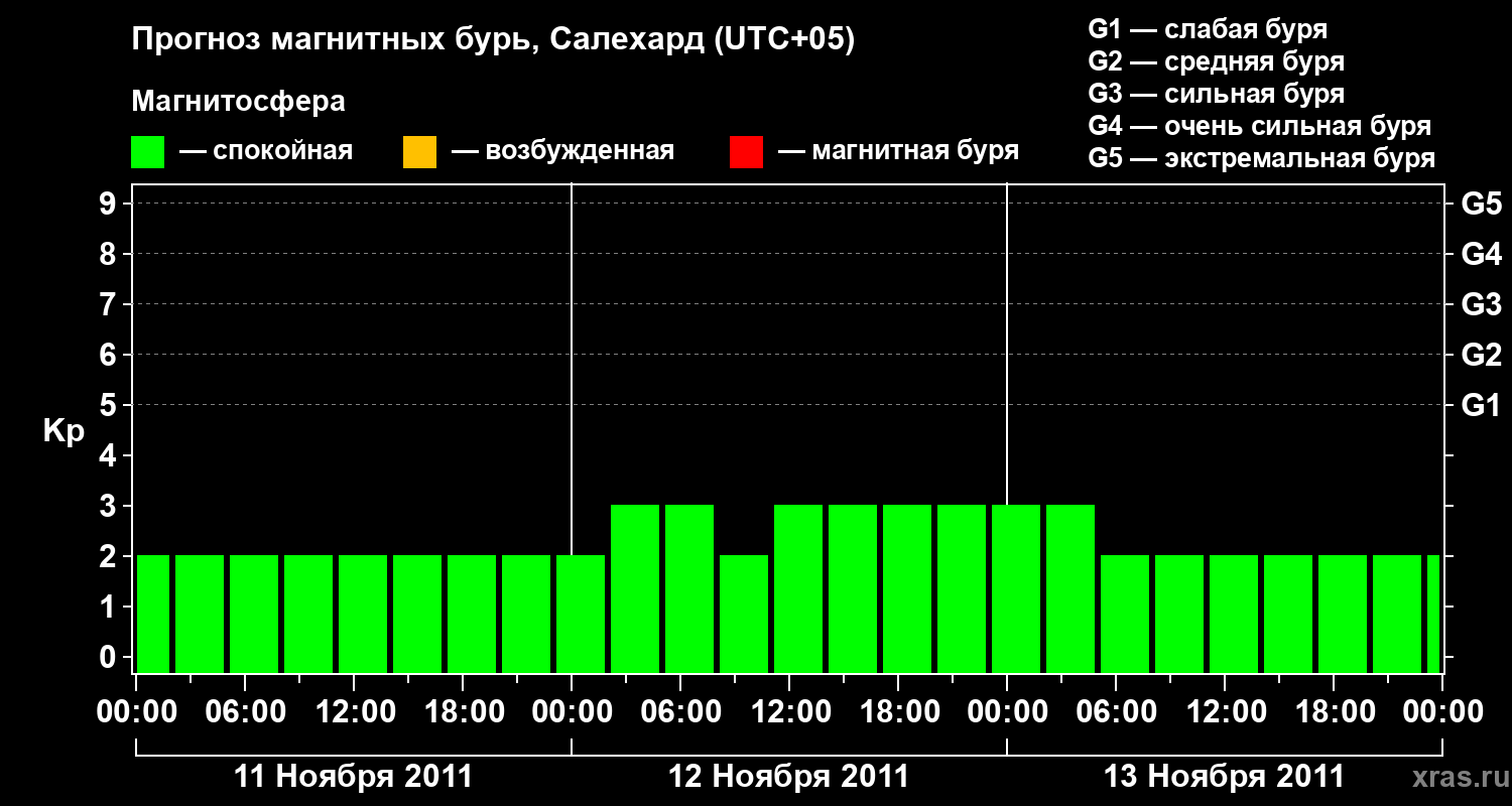 Прогноз магнитных бурь в Салехарде — 11 ноября 2011 года