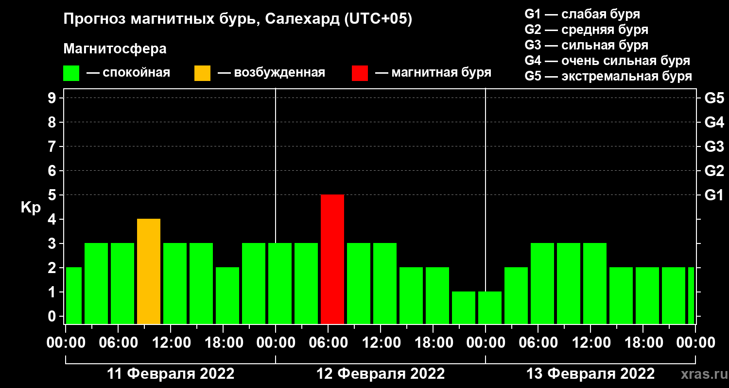 Прогноз магнитных бурь в Салехарде на 11 февраля 2022 года