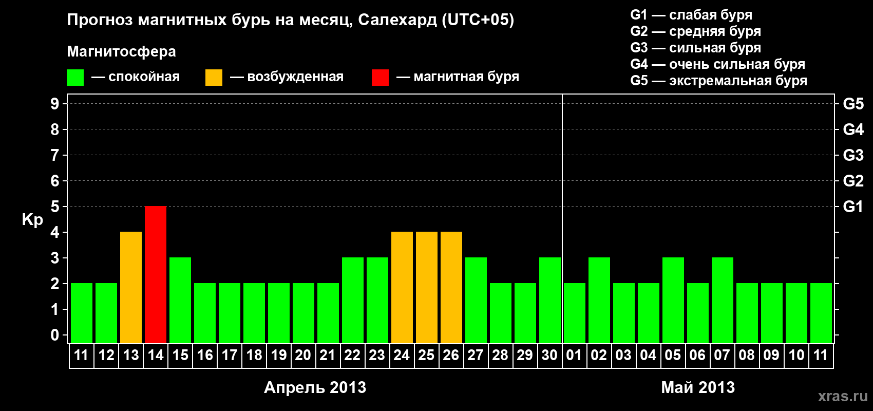 Прогноз магнитных бурь в Салехарде — 11 апреля 2013 года