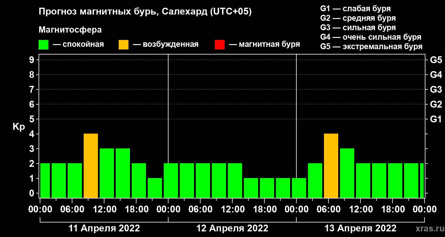 Прогноз магнитных бурь в Салехарде на 11 апреля 2022 года
