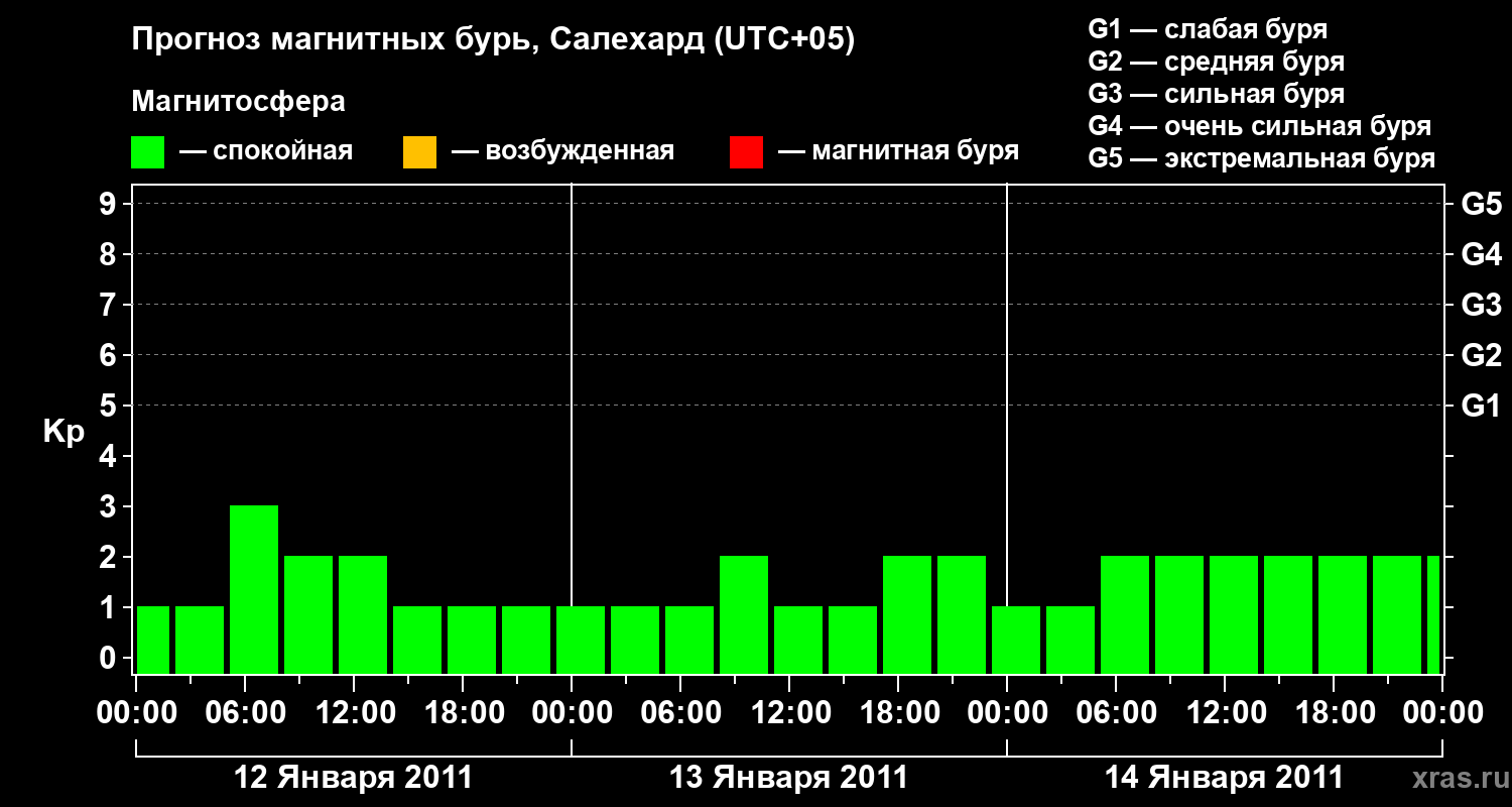 Прогноз магнитных бурь в Салехарде — 12 января 2011 года