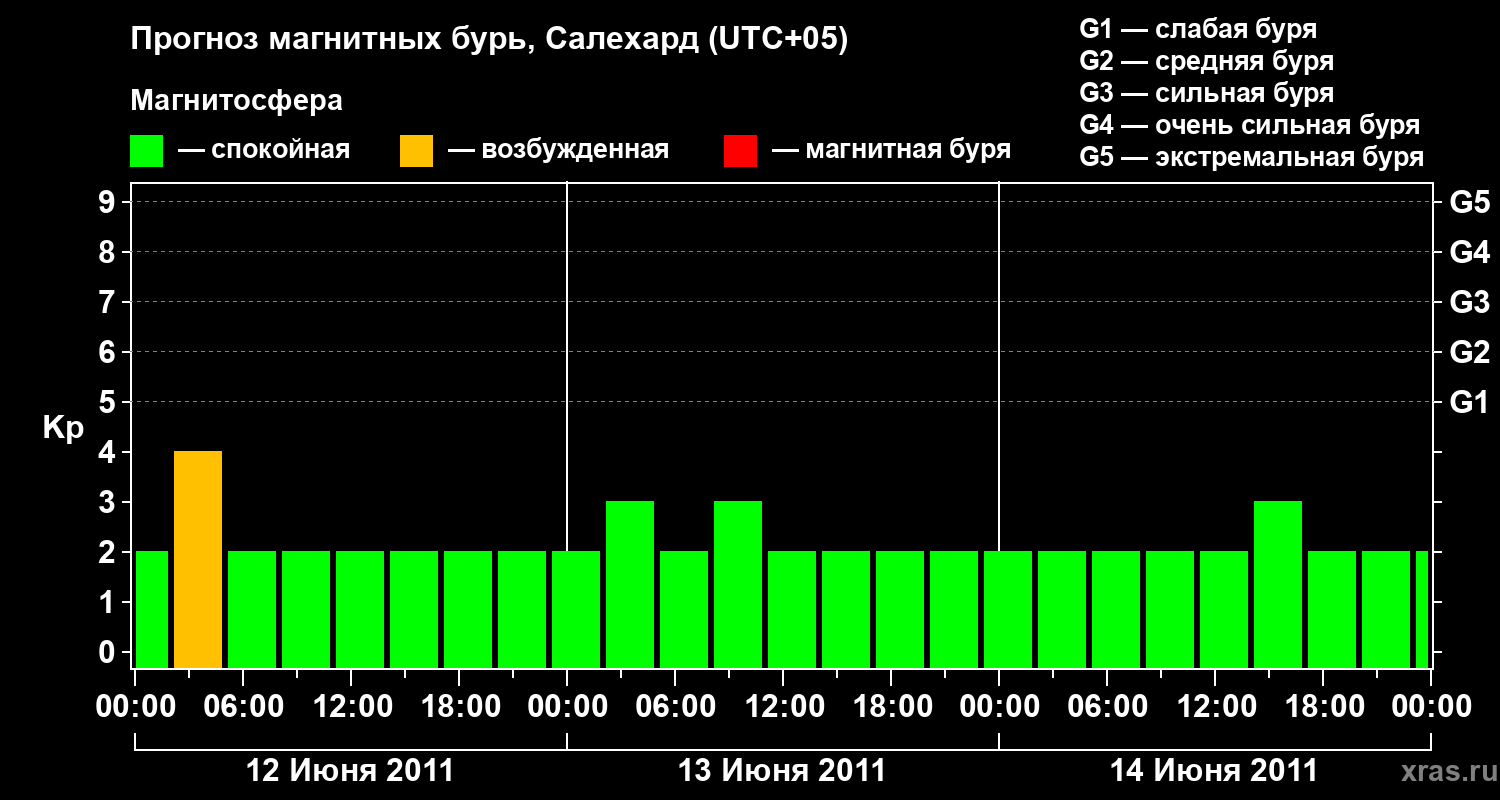 Прогноз магнитных бурь в Салехарде — 12 июня 2011 года
