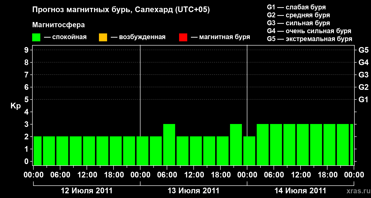 Прогноз магнитных бурь в Салехарде — 12 июля 2011 года