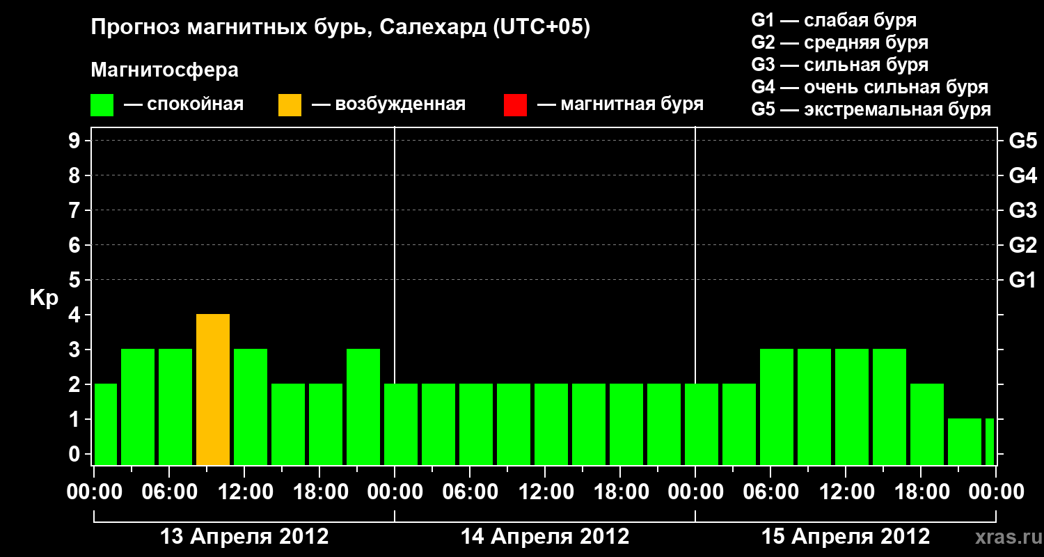 Прогноз магнитных бурь в Салехарде — 13 апреля 2012 года