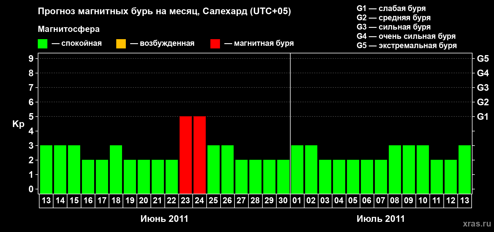 Прогноз магнитных бурь в Салехарде — 13 июня 2011 года