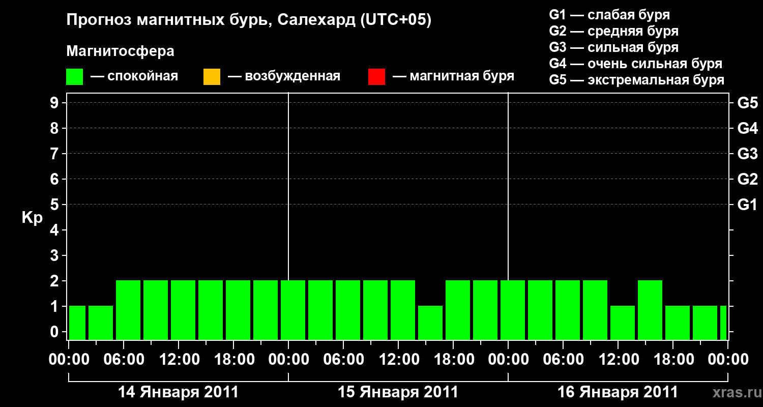 Прогноз магнитных бурь в Салехарде — 14 января 2011 года