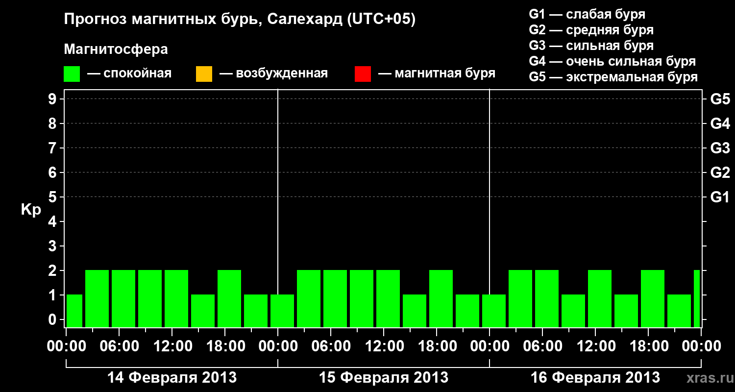 Прогноз магнитных бурь в Салехарде на 14 февраля 2013 года