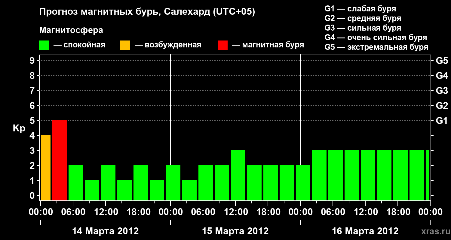 Прогноз магнитных бурь в Салехарде на 14 марта 2012 года