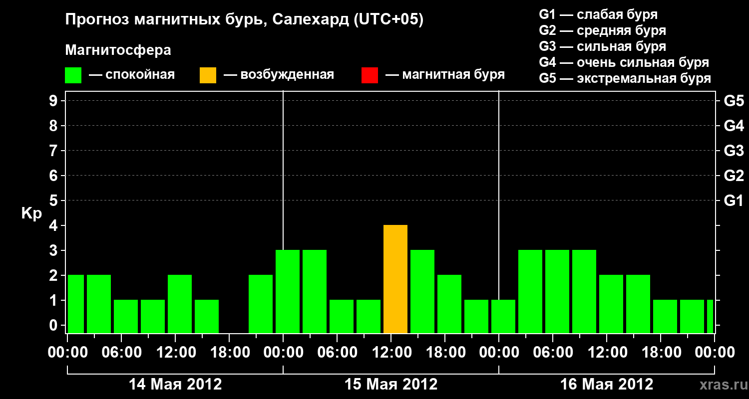 Прогноз магнитных бурь в Салехарде на 14 мая 2012 года