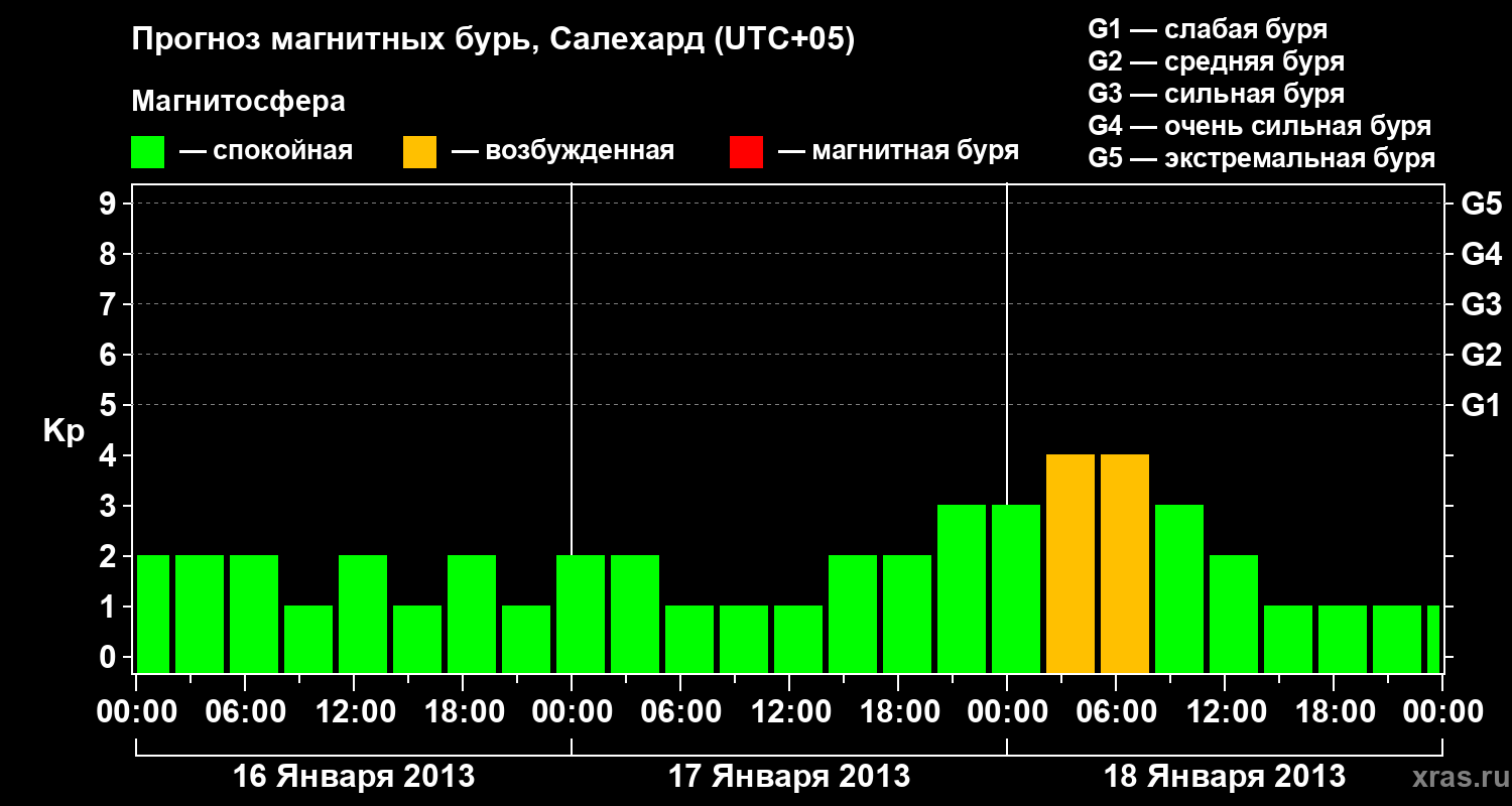 Прогноз магнитных бурь в Салехарде — 16 января 2013 года