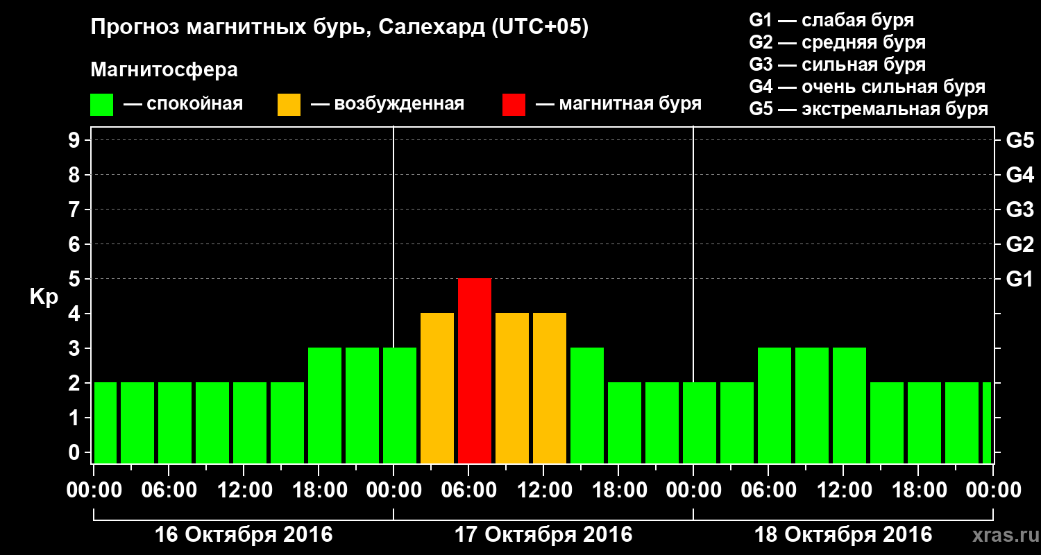 Прогноз магнитных бурь в Салехарде — 16 октября 2016 года