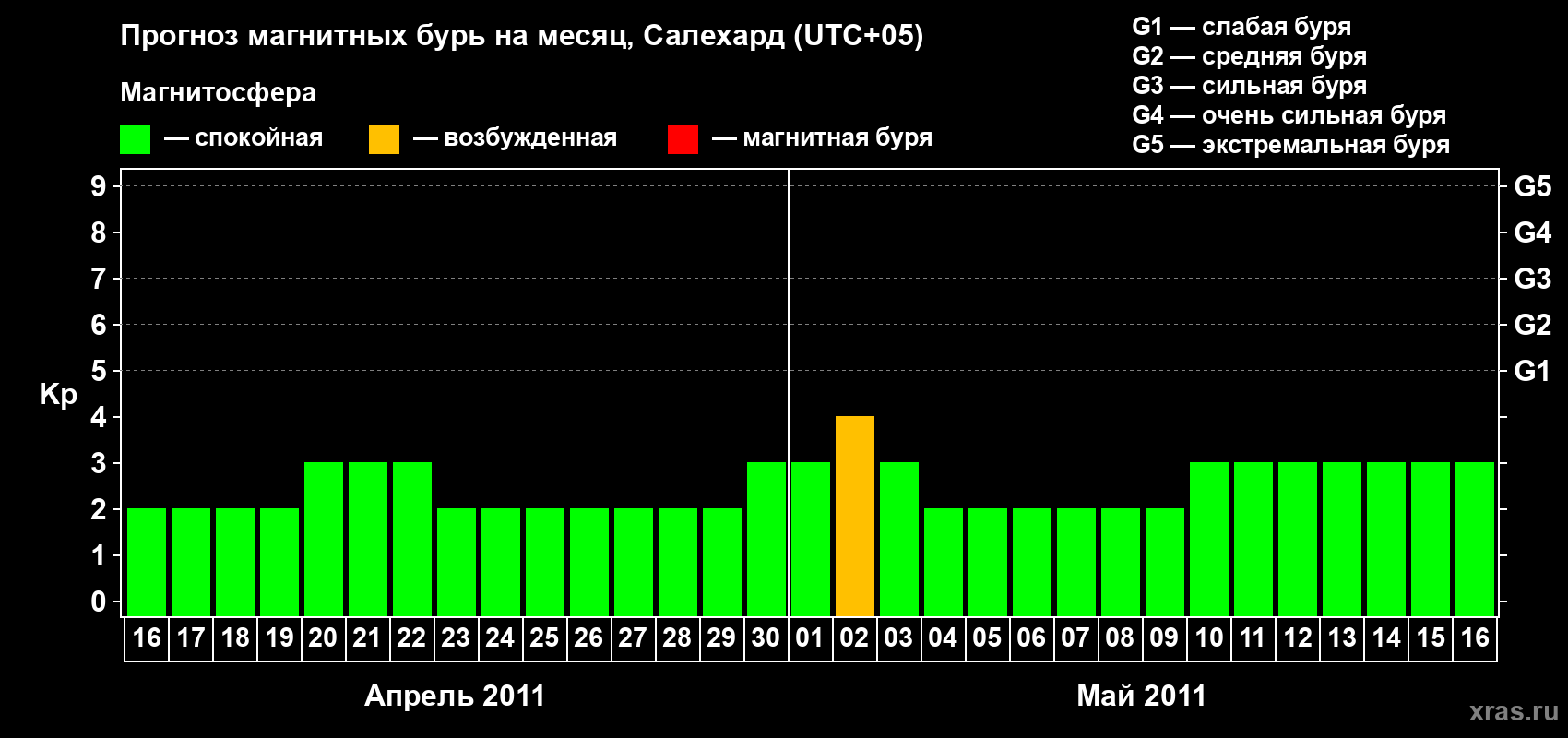 Прогноз магнитных бурь в Салехарде — 16 апреля 2011 года