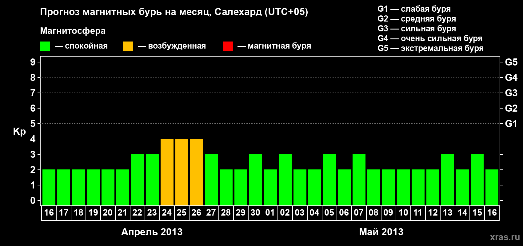 Прогноз магнитных бурь в Салехарде — 16 апреля 2013 года