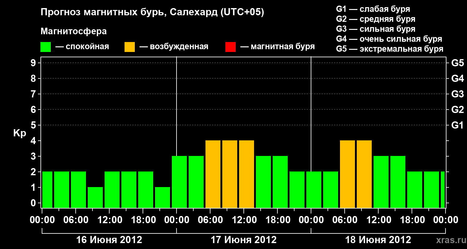 Прогноз магнитных бурь в Салехарде — 16 июня 2012 года
