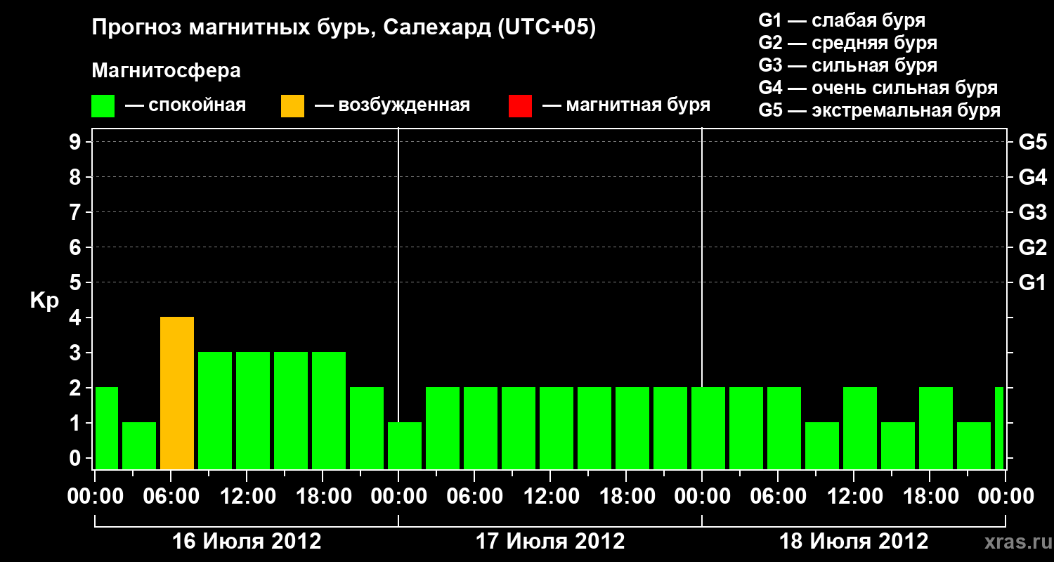 Прогноз магнитных бурь в Салехарде на 16 июля 2012 года