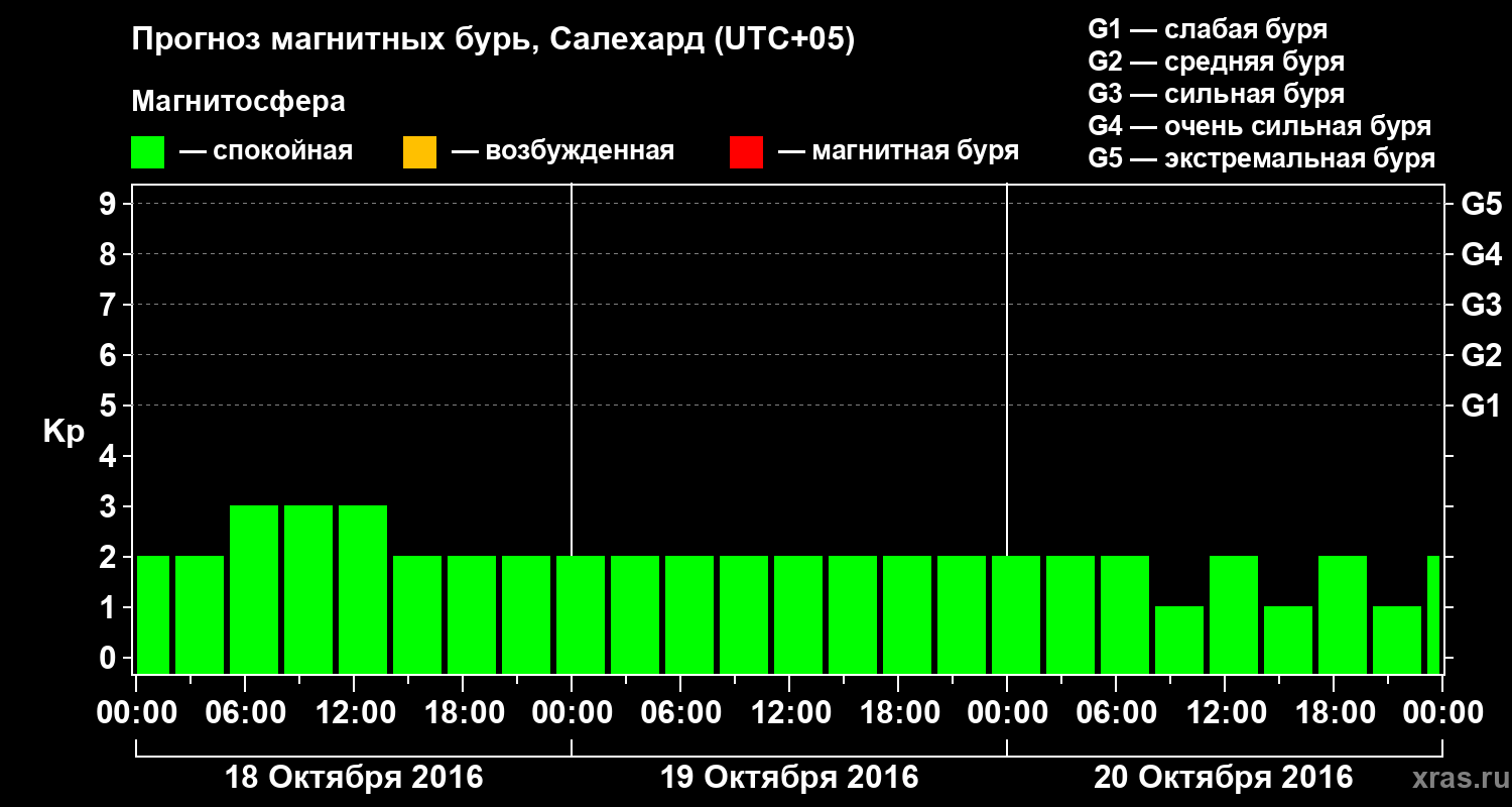 Прогноз магнитных бурь в Салехарде — 18 октября 2016 года