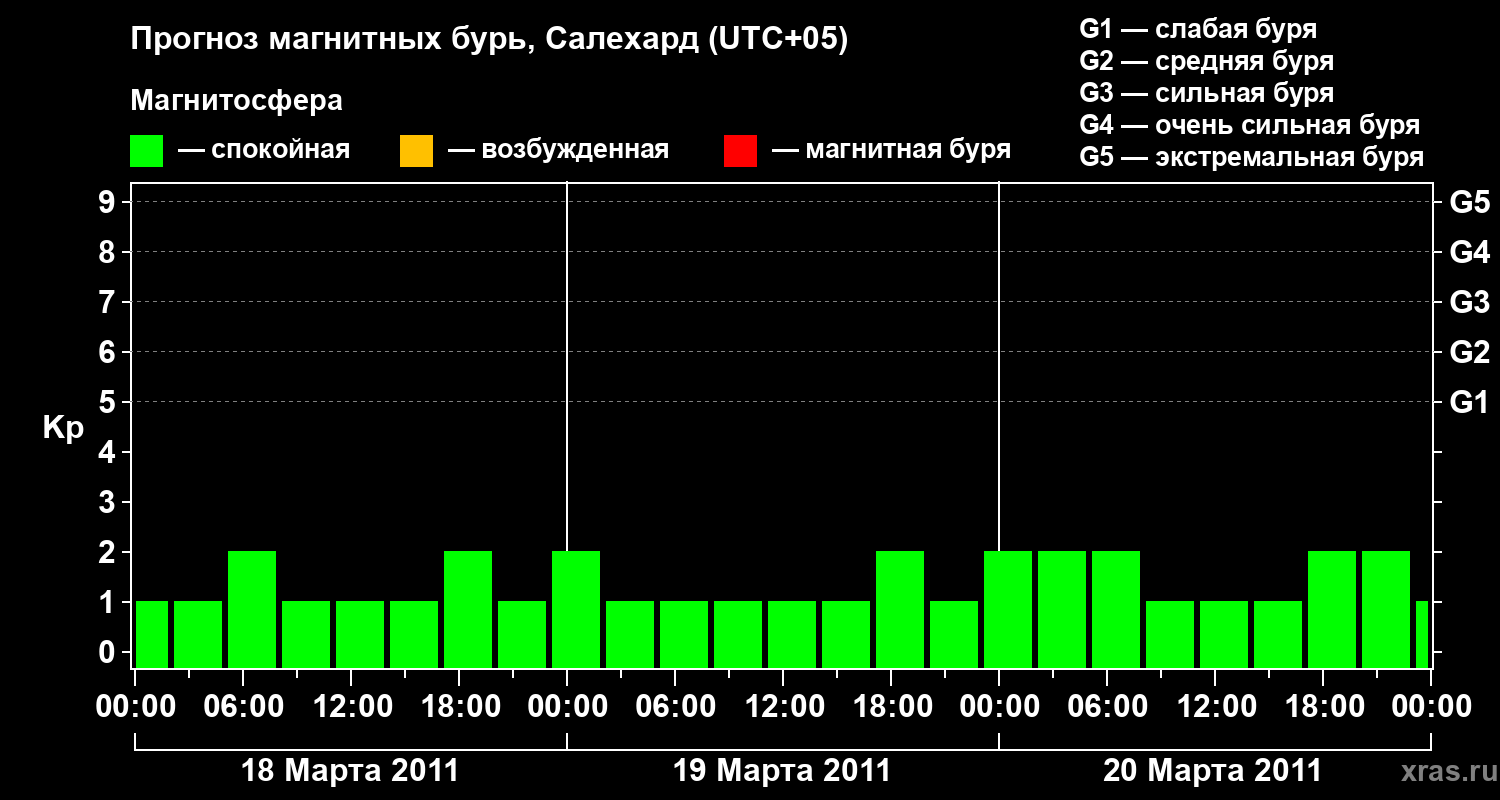 Прогноз магнитных бурь в Салехарде — 18 марта 2011 года