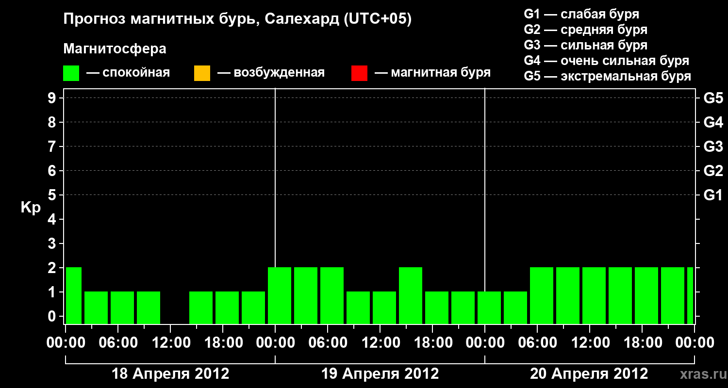 Прогноз магнитных бурь в Салехарде на 18 апреля 2012 года