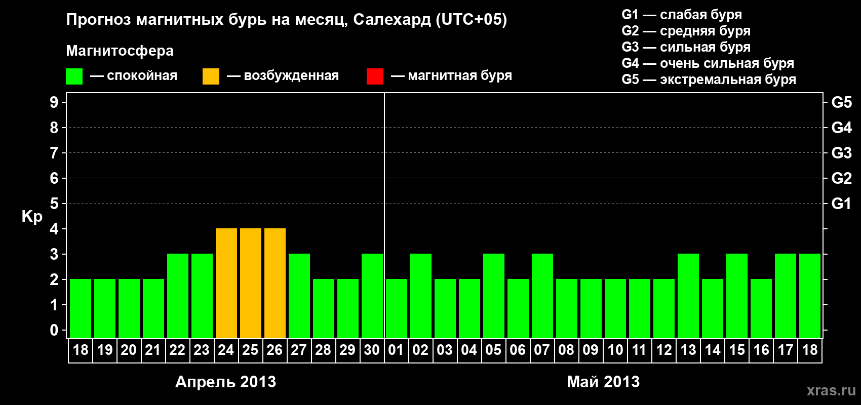 Прогноз магнитных бурь в Салехарде — 18 апреля 2013 года