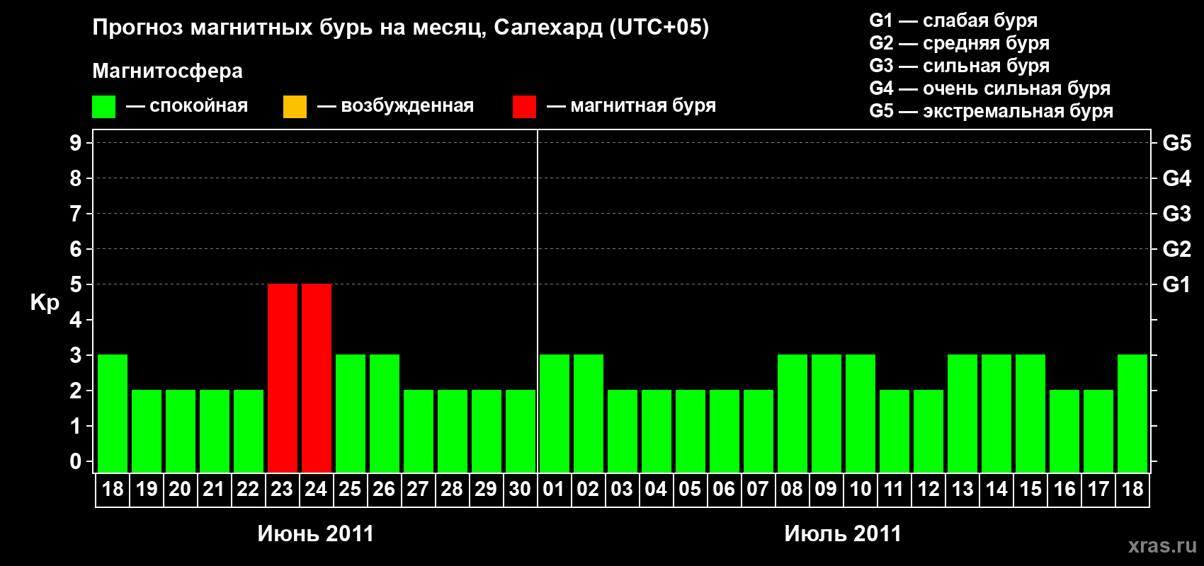 Прогноз магнитных бурь в Салехарде — 18 июня 2011 года