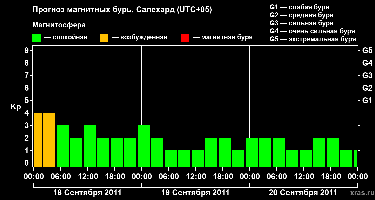 Прогноз магнитных бурь в Салехарде на 18 сентября 2011 года