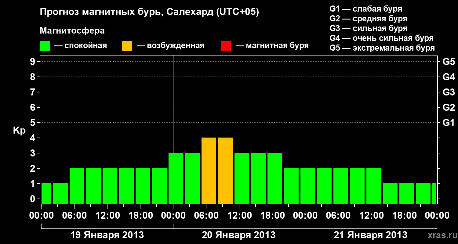 Прогноз магнитных бурь в Салехарде — 19 января 2013 года