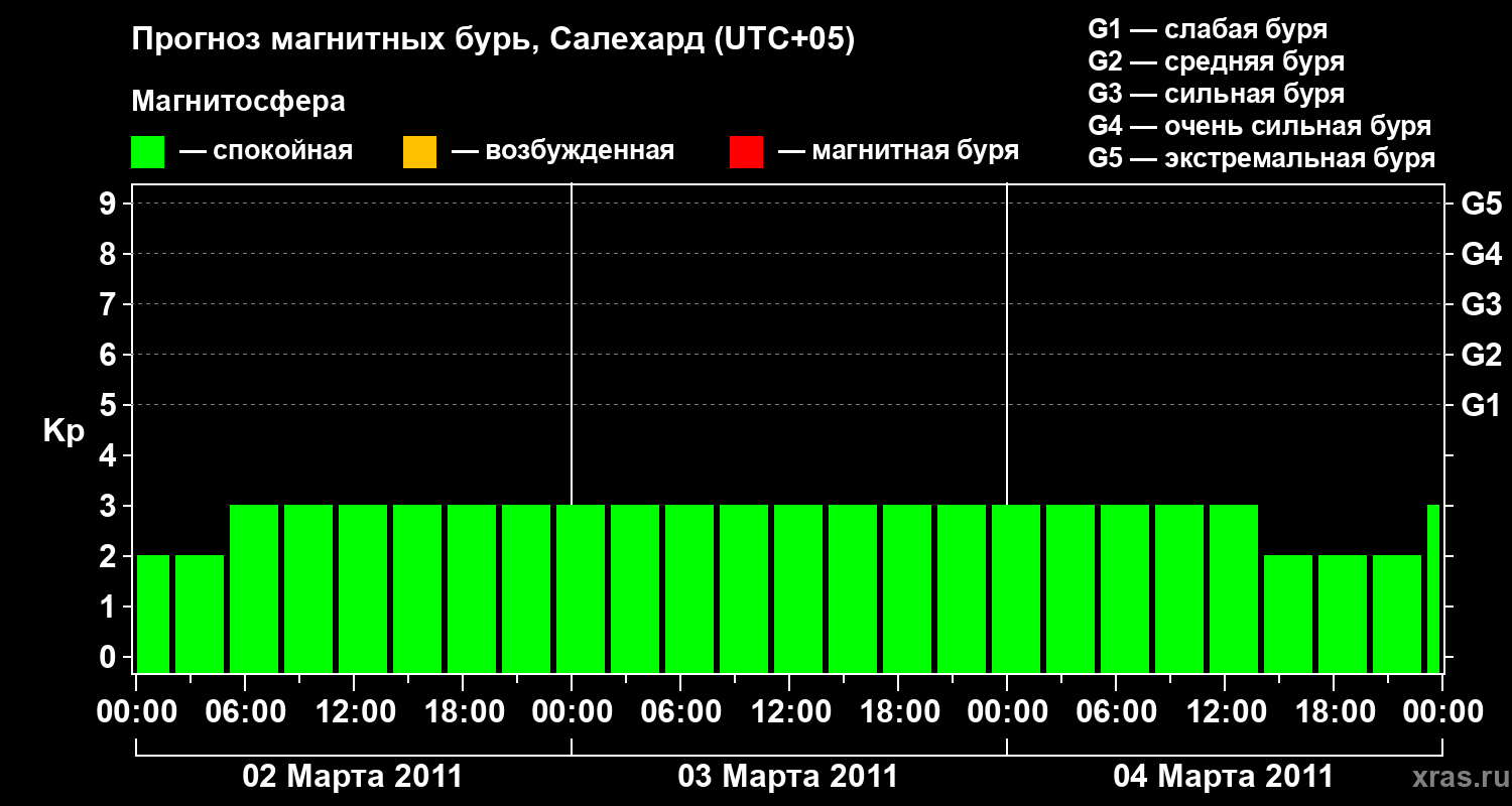 Прогноз магнитных бурь в Салехарде — 2 марта 2011 года