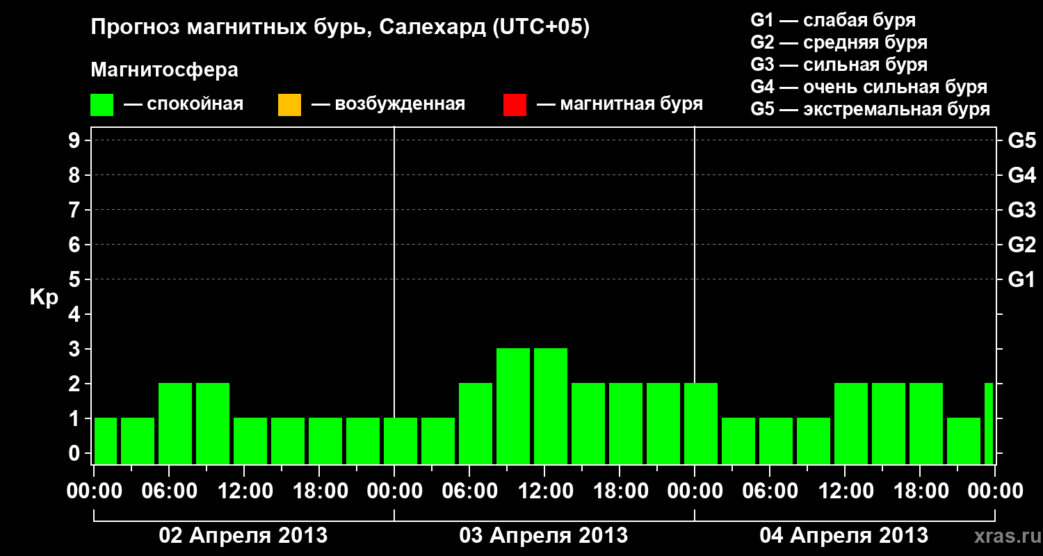 Прогноз магнитных бурь в Салехарде — 2 апреля 2013 года