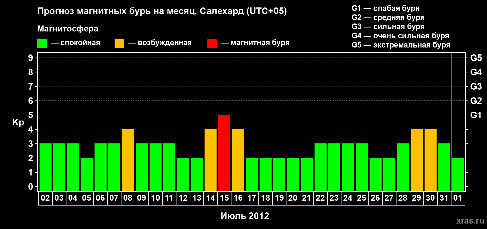 Прогноз магнитных бурь в Салехарде на 2 июля 2012 года