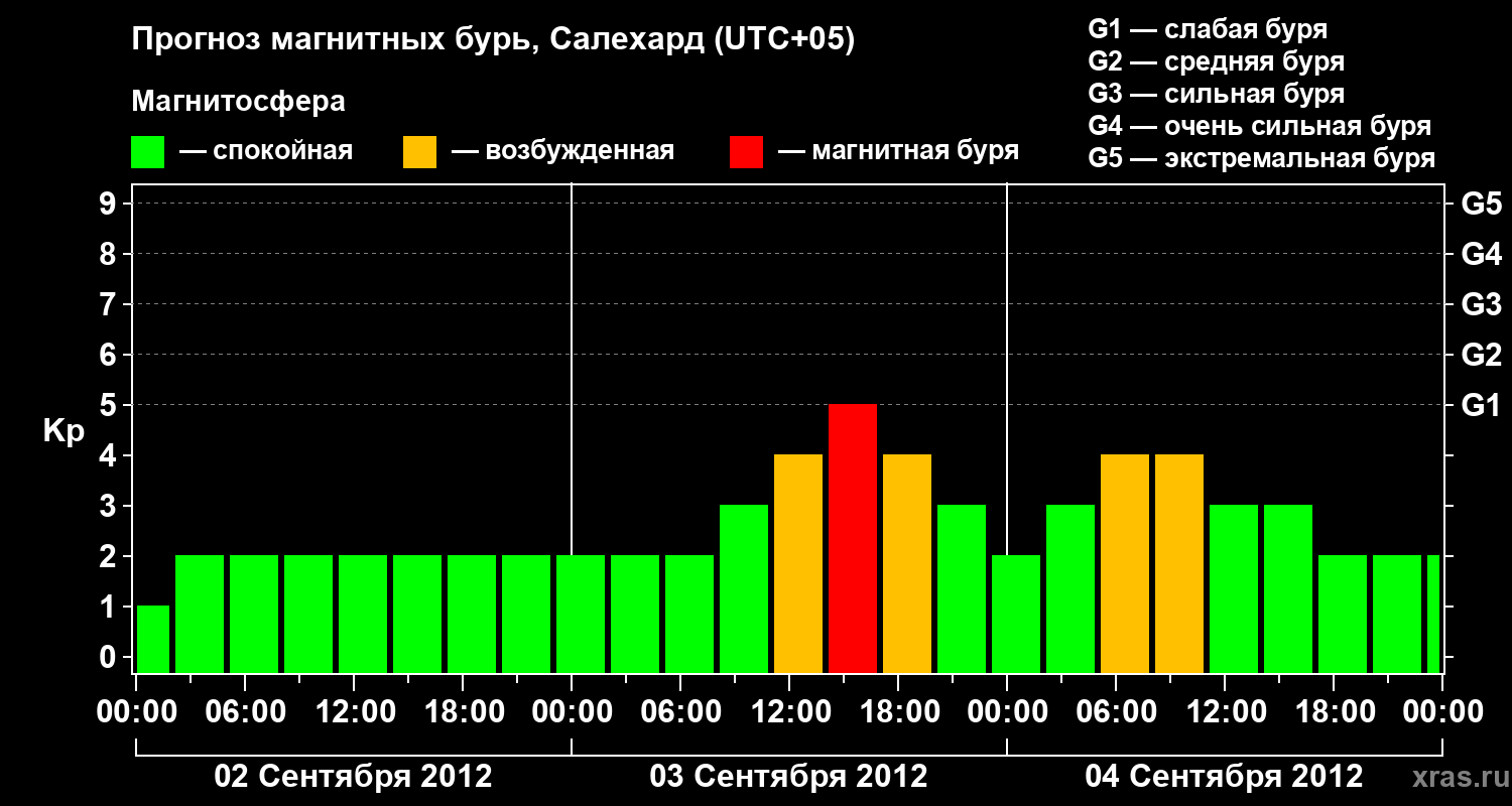 Прогноз магнитных бурь в Салехарде — 2 сентября 2012 года