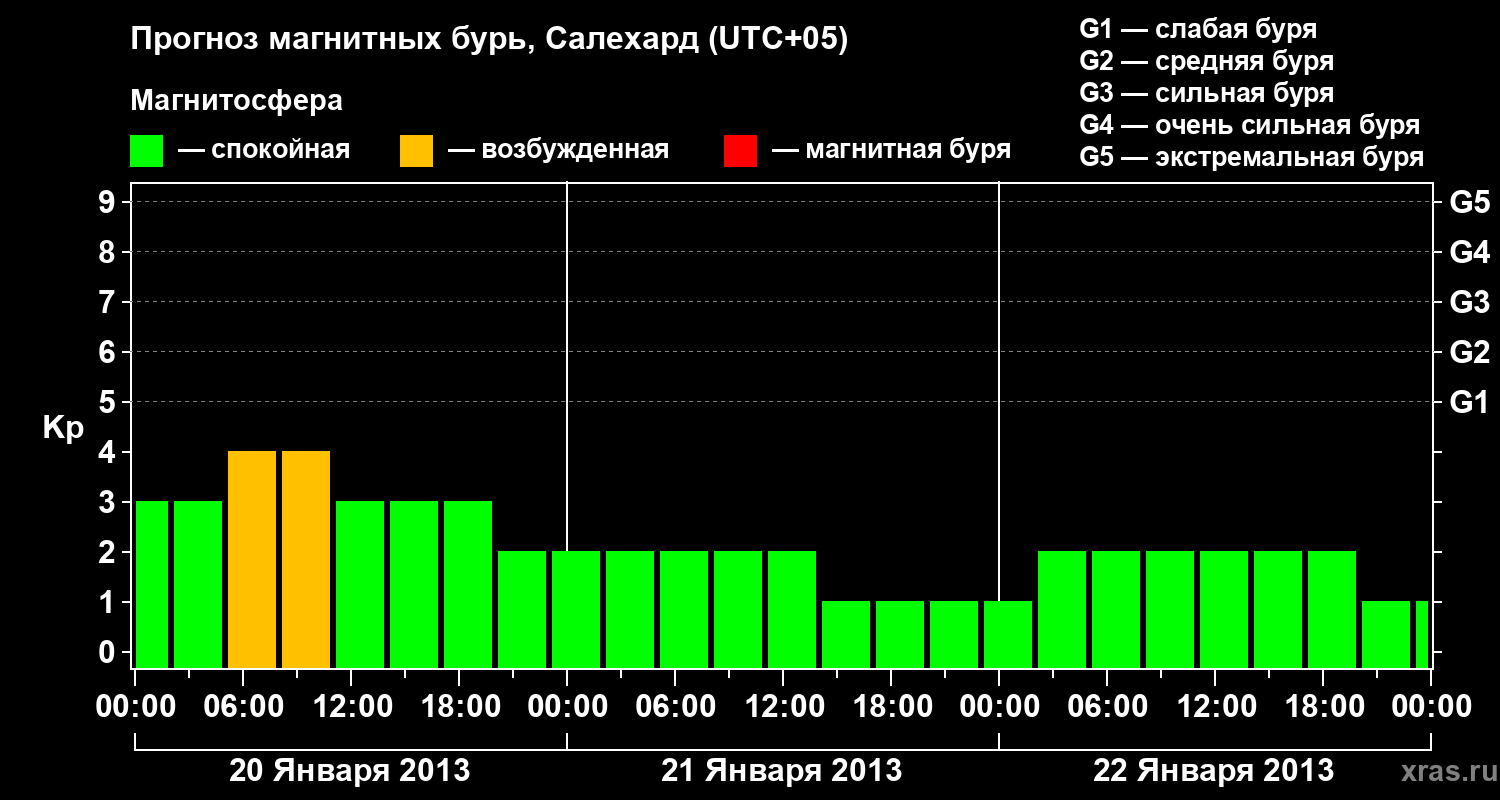 Прогноз магнитных бурь в Салехарде — 20 января 2013 года