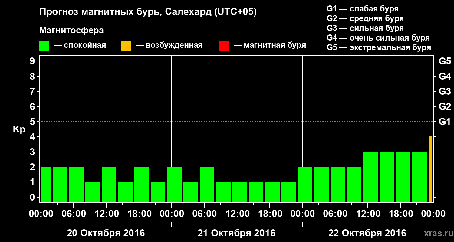 Прогноз магнитных бурь в Салехарде на 20 октября 2016 года