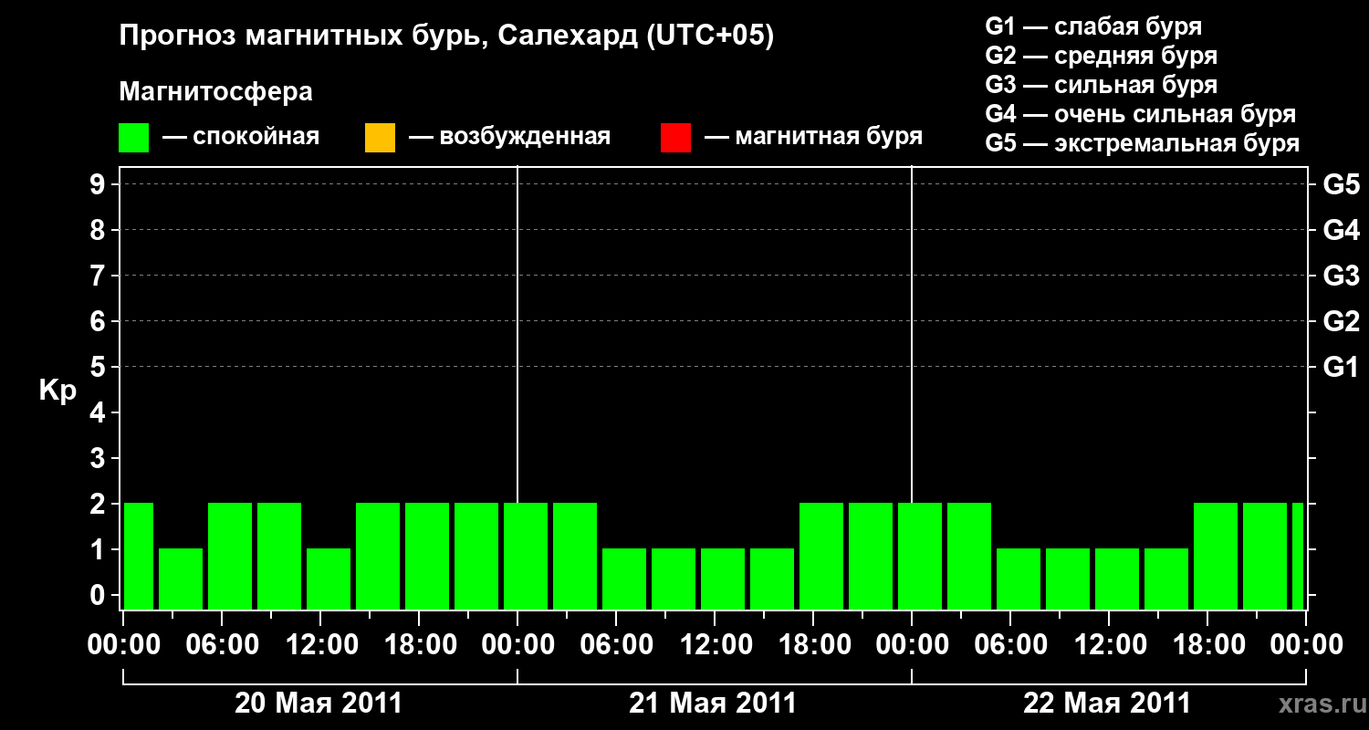 Прогноз магнитных бурь в Салехарде — 20 мая 2011 года